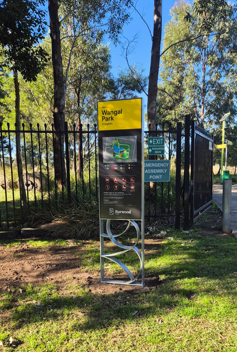 Cunneen Signs partnered with Burwood Council to deliver a cohesive and visually striking signage package for Wangal Park, designed to support both wayfinding and meaningful engagement with the site.
